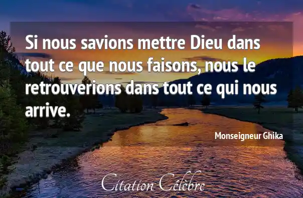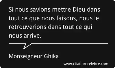 Si nous savions mettre Dieu dans tout ce que nous faisons, nous le retrouverions dans tout ce qui nous arrive.