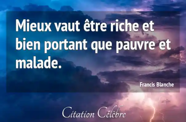 Mieux vaut être riche et bien portant que pauvre et malade.