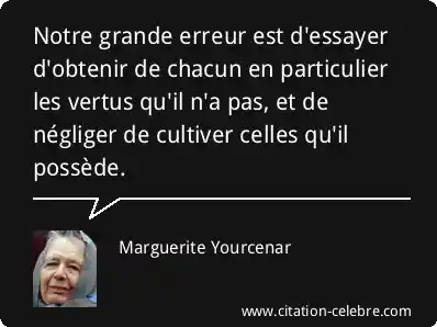 Notre grande erreur est d'essayer d'obtenir de chacun en particulier les vertus qu'il n'a pas, et de négliger de cultiver celles qu'il possède.