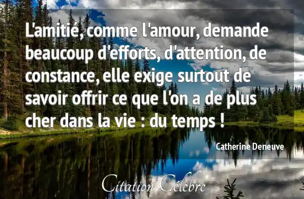L'amitié, comme l'amour, demande beaucoup d'efforts, d'attention, de constance, elle exige surtout de savoir offrir ce que l'on a de plus cher dans la vie : du temps !