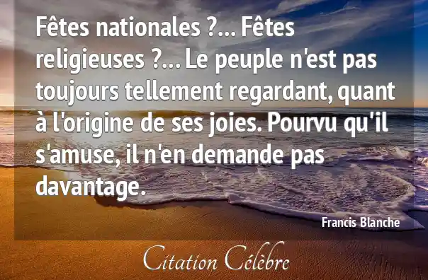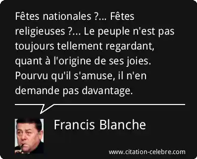 Fêtes nationales ?... Fêtes religieuses ?... Le peuple n'est pas toujours tellement regardant, quant à l'origine de ses joies. Pourvu qu'il s'amuse, il n'en demande pas davantage.