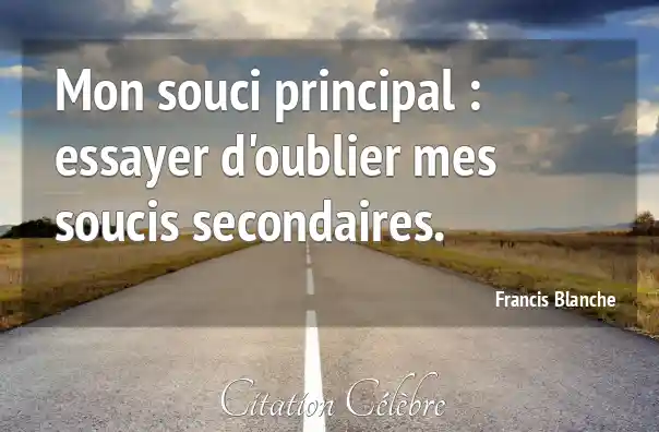 Mon souci principal : essayer d'oublier mes soucis secondaires.
