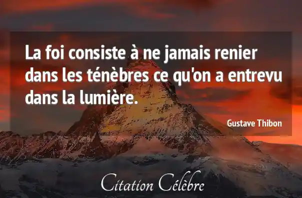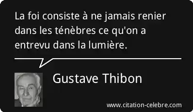 La foi consiste à ne jamais renier dans les ténèbres ce qu'on a entrevu dans la lumière.