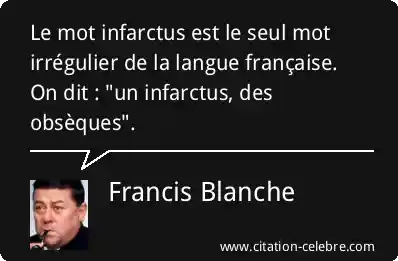 Le mot infarctus est le seul mot irrégulier de la langue française. On dit : "un infarctus, des obsèques".
