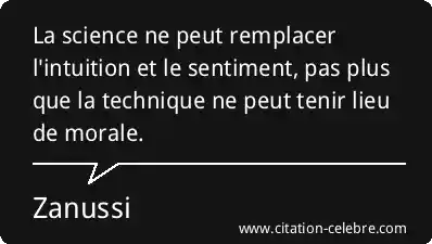 La science ne peut remplacer l'intuition et le sentiment, pas plus que la technique ne peut tenir lieu de morale.
