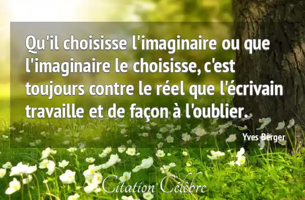 Qu'il choisisse l'imaginaire ou que l'imaginaire le choisisse, c'est toujours contre le réel que l'écrivain travaille et de façon à l'oublier.