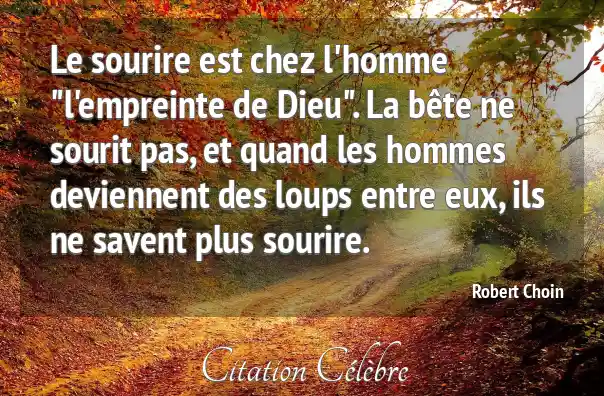 Le sourire est chez l'homme "l'empreinte de Dieu". La bête ne sourit pas, et quand les hommes deviennent des loups entre eux, ils ne savent plus sourire.