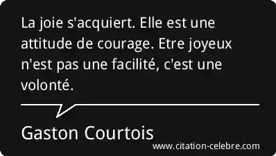 La joie s'acquiert. Elle est une attitude de courage. Etre joyeux n'est pas une facilité, c'est une volonté.