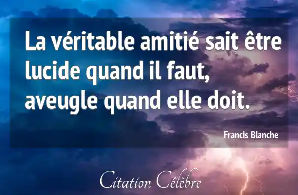 La véritable amitié sait être lucide quand il faut, aveugle quand elle doit.