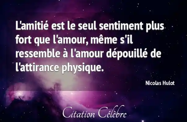 L'amitié est le seul sentiment plus fort que l'amour, même s'il ressemble à l'amour dépouillé de l'attirance physique.