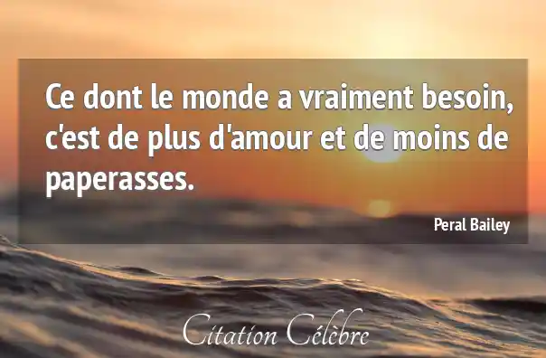 Ce dont le monde a vraiment besoin, c'est de plus d'amour et de moins de paperasses.