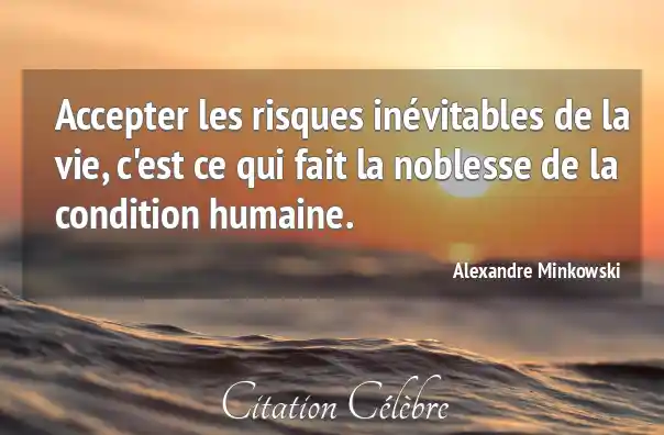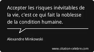 Accepter les risques inévitables de la vie, c'est ce qui fait la noblesse de la condition humaine.
