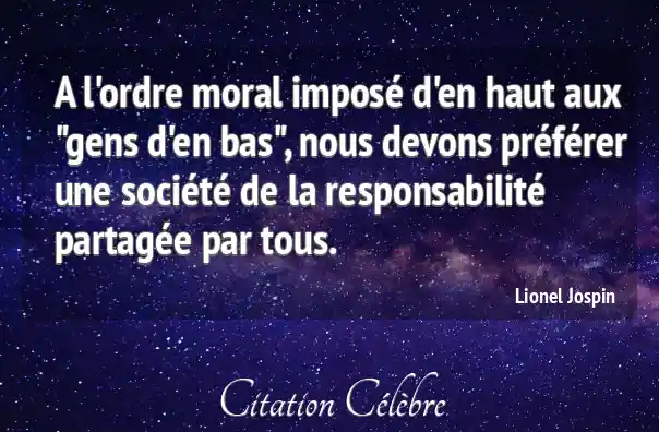 A l'ordre moral imposé d'en haut aux "gens d'en bas", nous devons préférer une société de la responsabilité partagée par tous.