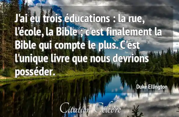 J'ai eu trois éducations : la rue, l'école, la Bible ; c'est finalement la Bible qui compte le plus. C'est l'unique livre que nous devrions posséder.