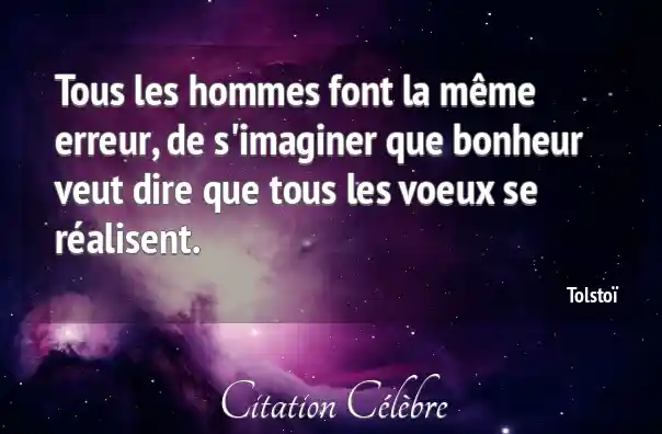 Tous les hommes font la même erreur, de s'imaginer que bonheur veut dire que tous les voeux se réalisent.