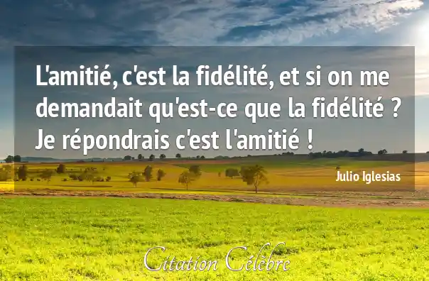 L'amitié, c'est la fidélité, et si on me demandait qu'est-ce que la fidélité ? Je répondrais c'est l'amitié !