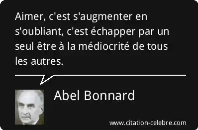 Aimer, c'est s'augmenter en s'oubliant, c'est échapper par un seul être à la médiocrité de tous les autres.