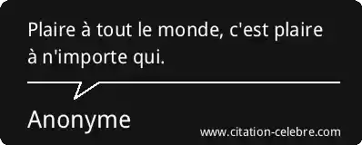 Plaire à tout le monde, c'est plaire à n'importe qui.