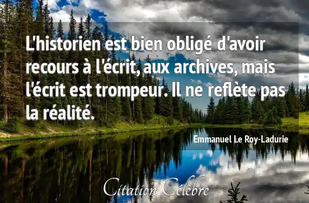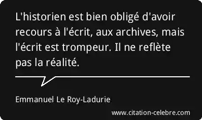 L'historien est bien obligé d'avoir recours à l'écrit, aux archives, mais l'écrit est trompeur. Il ne reflète pas la réalité.