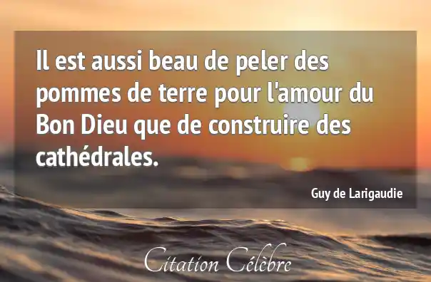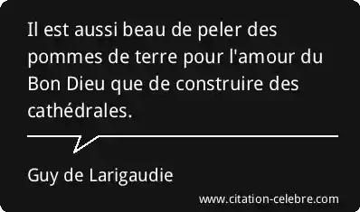 Il est aussi beau de peler des pommes de terre pour l'amour du Bon Dieu que de construire des cathédrales.