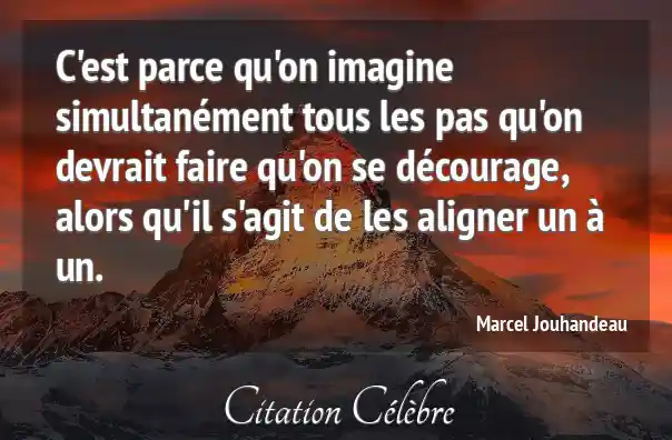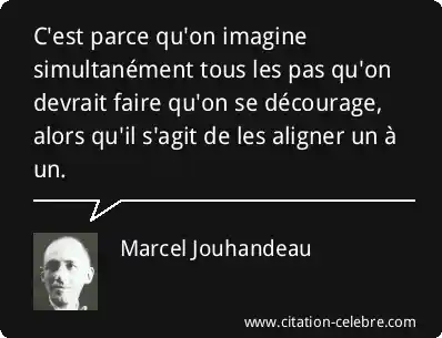 C'est parce qu'on imagine simultanément tous les pas qu'on devrait faire qu'on se décourage, alors qu'il s'agit de les aligner un à un.