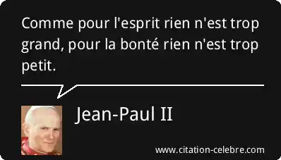 Comme pour l'esprit rien n'est trop grand, pour la bonté rien n'est trop petit.