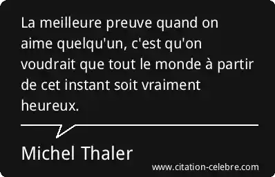 La meilleure preuve quand on aime quelqu'un, c'est qu'on voudrait que tout le monde à partir de cet instant soit vraiment heureux.