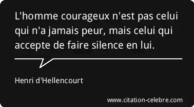 L'homme courageux n'est pas celui qui n'a jamais peur, mais celui qui accepte de faire silence en lui.