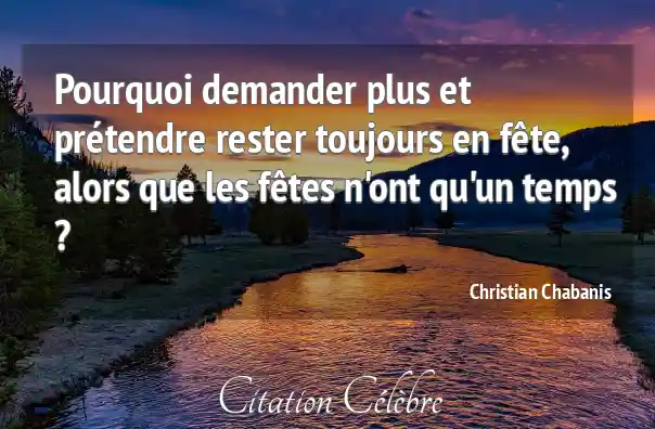 Pourquoi demander plus et prétendre rester toujours en fête, alors que les fêtes n'ont qu'un temps ?