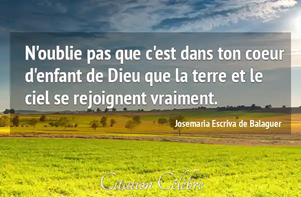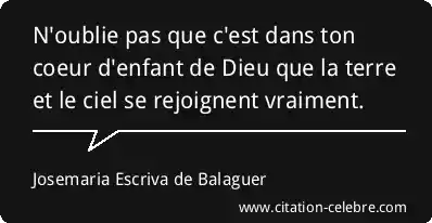 N'oublie pas que c'est dans ton coeur d'enfant de Dieu que la terre et le ciel se rejoignent vraiment.