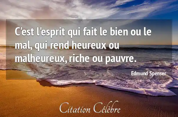 C'est l'esprit qui fait le bien ou le mal, qui rend heureux ou malheureux, riche ou pauvre.