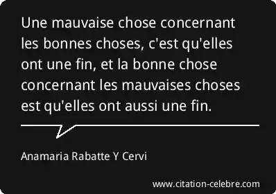 Une mauvaise chose concernant les bonnes choses, c'est qu'elles ont une fin, et la bonne chose concernant les mauvaises choses est qu'elles ont aussi une fin.