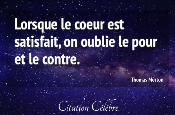 Lorsque le coeur est satisfait, on oublie le pour et le contre.
