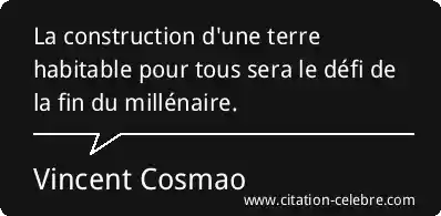 La construction d'une terre habitable pour tous sera le défi de la fin du millénaire.