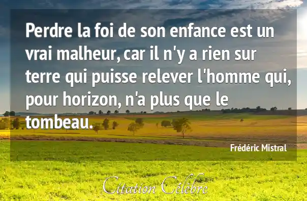Perdre la foi de son enfance est un vrai malheur, car il n'y a rien sur terre qui puisse relever l'homme qui, pour horizon, n'a plus que le tombeau.