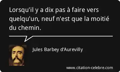 Citation Jules Barbey d’Aurevilly chemin : Lorsqu'il y a dix pas à faire vers quelqu'un, neuf...