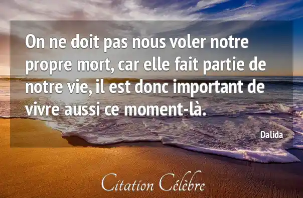 On ne doit pas nous voler notre propre mort, car elle fait partie de notre vie, il est donc important de vivre aussi ce moment-là.