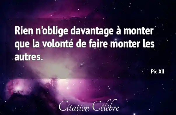 Rien n'oblige davantage à monter que la volonté de faire monter les autres.
