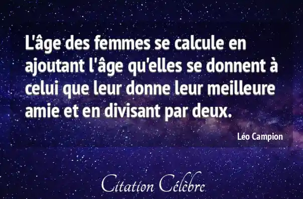 L'âge des femmes se calcule en ajoutant l'âge qu'elles se donnent à celui que leur donne leur meilleure amie et en divisant par deux.