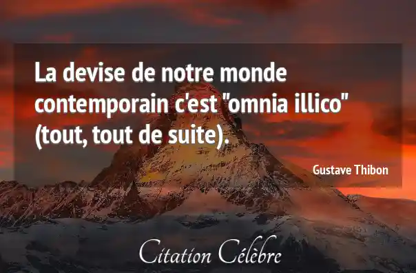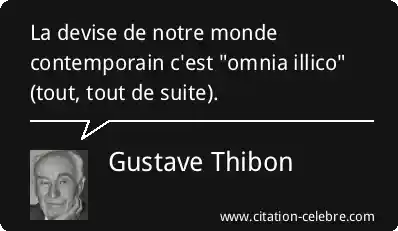 La devise de notre monde contemporain c'est "omnia illico" (tout, tout de suite).