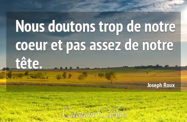 Nous doutons trop de notre coeur et pas assez de notre tête.