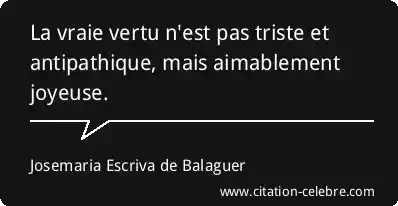 Citation Josemaria Escriva de Balaguer triste : La vraie vertu n'est pas triste et antipathique, mais aimablement...