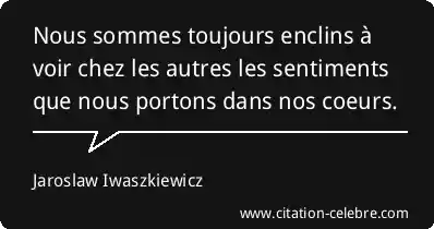 Nous sommes toujours enclins à voir chez les autres les sentiments que nous portons dans nos coeurs.