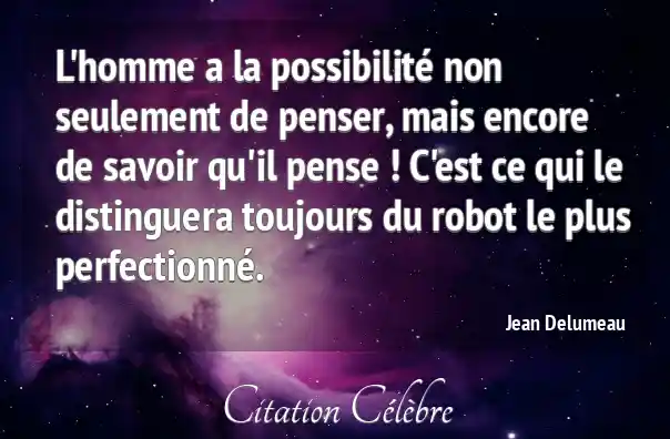 L'homme a la possibilité non seulement de penser, mais encore de savoir qu'il pense ! C'est ce qui le distinguera toujours du robot le plus perfectionné.