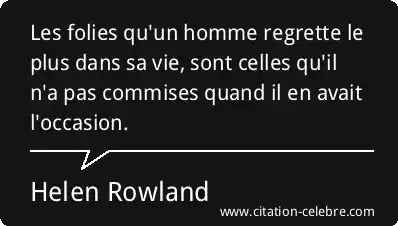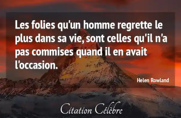 Les folies qu'un homme regrette le plus dans sa vie, sont celles qu'il n'a pas commises quand il en avait l'occasion.