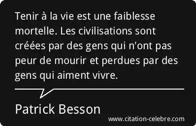 Tenir à la vie est une faiblesse mortelle. Les civilisations sont créées par des gens qui n'ont pas peur de mourir et perdues par des gens qui aiment vivre.
