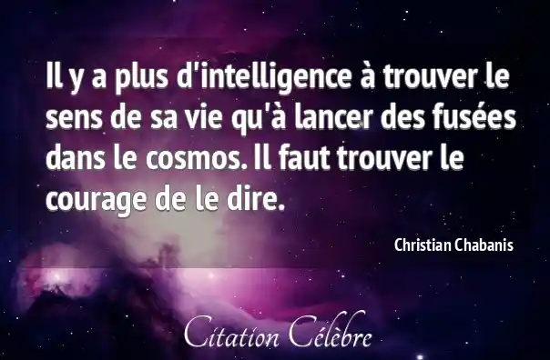 Il y a plus d'intelligence à trouver le sens de sa vie qu'à lancer des fusées dans le cosmos. Il faut trouver le courage de le dire.