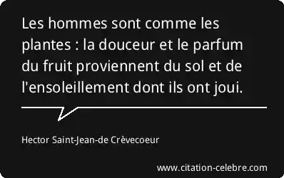 Les hommes sont comme les plantes : la douceur et le parfum du fruit proviennent du sol et de l'ensoleillement dont ils ont joui.