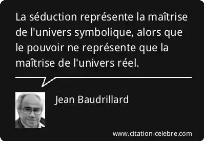 La séduction représente la maîtrise de l'univers symbolique, alors que le pouvoir ne représente que la maîtrise de l'univers réel.
