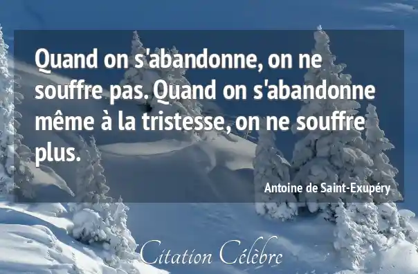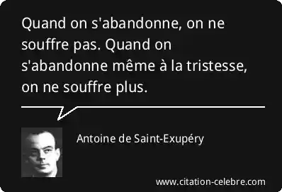 Quand on s'abandonne, on ne souffre pas. Quand on s'abandonne même à la tristesse, on ne souffre plus.